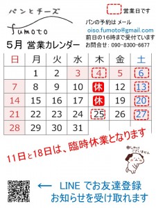 5月11日と18日は臨時休業させていただきます。不自由をおかけして、申し訳ありません <(_ _)>